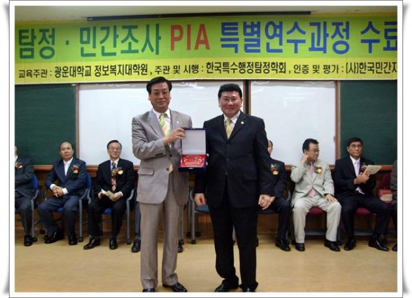 2008³â 6¿ù 7ÀÏ PIA 19±â ±¤¿î´ëÇб³ Á¤º¸º¹Áö´ëÇпø Ưº°¿¬¼ö°úÁ¤ 8ÁÖ°£ÀÇ ÀÌ·Ð ¹× ½Ç±â±³À°À» ¹«»çÈ÷ ¸¶Ä¡°í  PIA19±â Ưº°¿¬¼ö°úÁ¤ ¼ö·á½Ä ÇÏ¿´½À´Ï´Ù. ¸¹Àº ³» ¿Üºó ¹× ±×µ¿¾È ±³À°À» ´ã´çÇϽŠ´ç ÇÐȸ Áöµµ ±³¼ö´ÔµéÀÌ Âü¼®ÇϽÿ© ÀÚ¸®¸¦ ºû³» ÁÖ¾ú½À´Ï´Ù. ¾ÕÀ¸·Î PIA19±â ¿©·¯ºÐµéÀÇ °ÇÅõ¸¦ º÷´Ï´Ù.